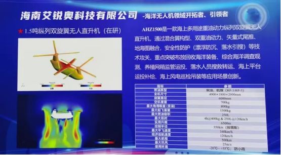 在陈浩的引领下,艾锐奥构建起“高校科研力量+企业研发团队”协同创新的联合体,依托海南热带海洋学院、沈阳航空航天大学等优质资源,持续突破行业技术壁垒。其核心产品AHZ1500海上多用途重油动力纵列双旋翼无人直升机,成为国内1.5吨级海洋无人机的标杆之作。该机型融合混合翼构型、双重油动力系统、矢量尾推技术与地海图智能导航,配备漂浮防沉、落水定位搜寻等多重安全机制,展现出卓越的海洋适应能力。它不仅能高效执行海洋观测、装备布放回收等科研任务,还可应用于养殖网箱监管、物资投送、落水人员搜救转运,乃至海上平台补给与风电设备巡检吊装,全面拓展无人系统在蓝海经济中的应用场景。更值得瞩目的是,艾锐奥团队牵头制定了全球首部海洋无人机领域国际标准,并成功实现全球首次无人直升机布放与回收AUV(自主水下航行器),彻底打破传统海洋作业对大型船舶的依赖,开启无人化海洋作业新纪元。